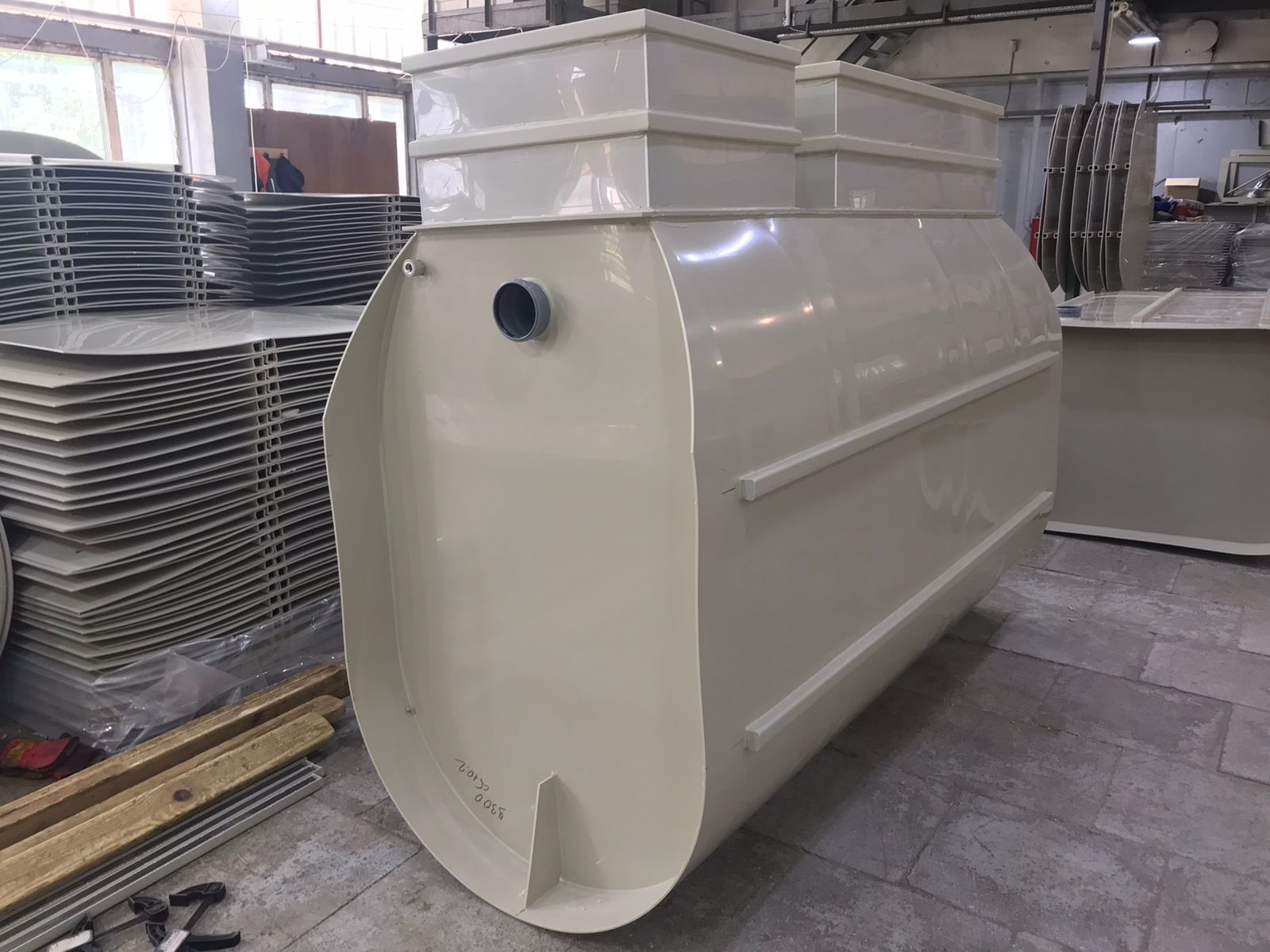 Корпус станции изготовлен из первичного полипропилена — прочного материала, который устойчив к влаге, химическим веществам и коррозии. Конструкция дополнительно усилена ребрами жесткости, благодаря чему септик уверенно выдерживает давление грунта.